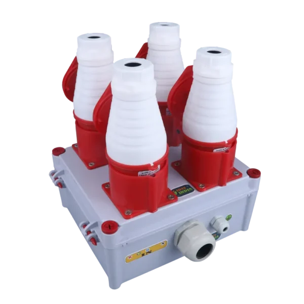 Plug socket Combined board 3 Phase 32 Amp 4X with Enclosure. No dealer No distributor. Pan India Supply. Sibass Plug and Socket, IP67 waterproof Enclosure.