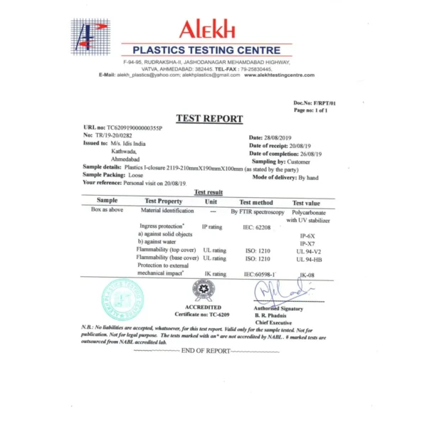 -Idis India’s Pole Mounted box ABS Grey RAL 7035 Opaque Enclosure 210 x 190 x 100 mm box waterproof IP65 IP67.